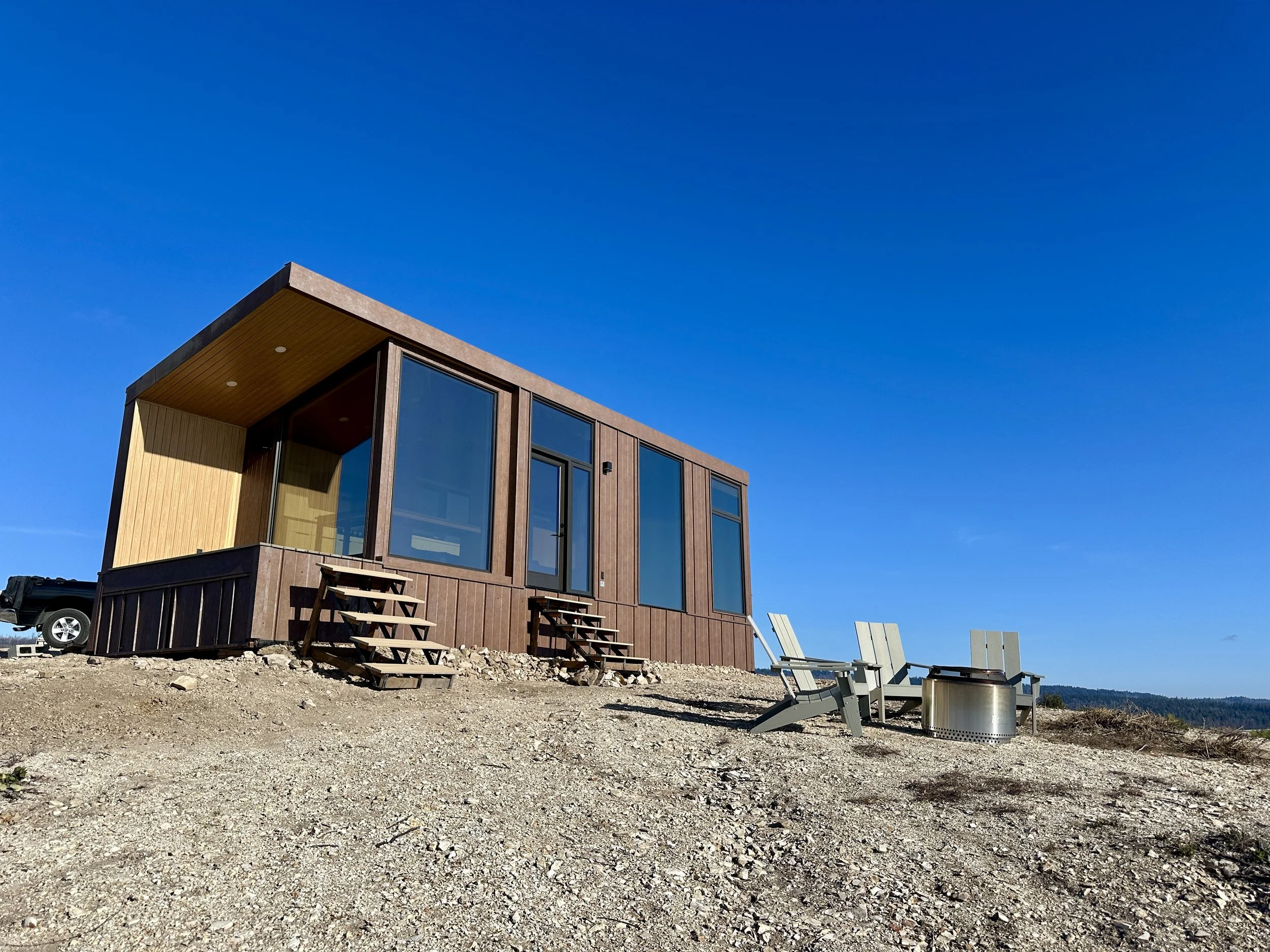 I have to say, this was probably one of our top tiny home experiences since starting Fritz Tiny Homes. While the home itself is so beautiful, it was memorable because it was the perfect example of limitless dreaming. This property is so remote, totally off-grid, and utterly peaceful and secluded. It was no small feat to get this tiny home delivered and we had to engage the help of an off-road salvage crew to get it up to the top of the mountain. There were challenges along the way but we got it up to site. It was such a victory.