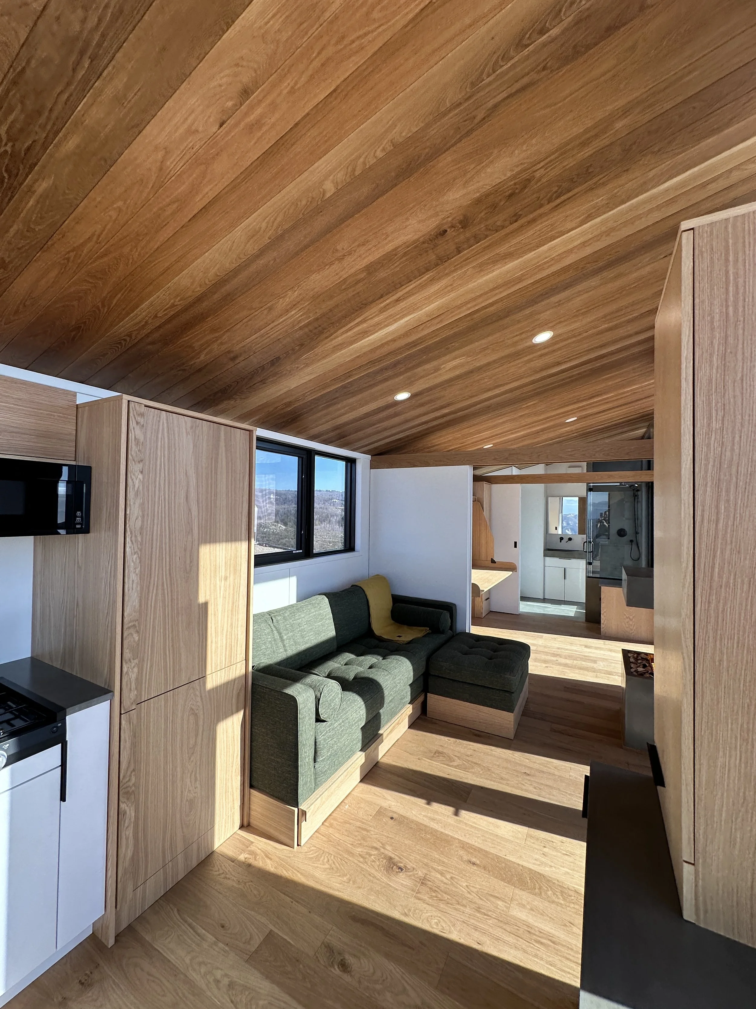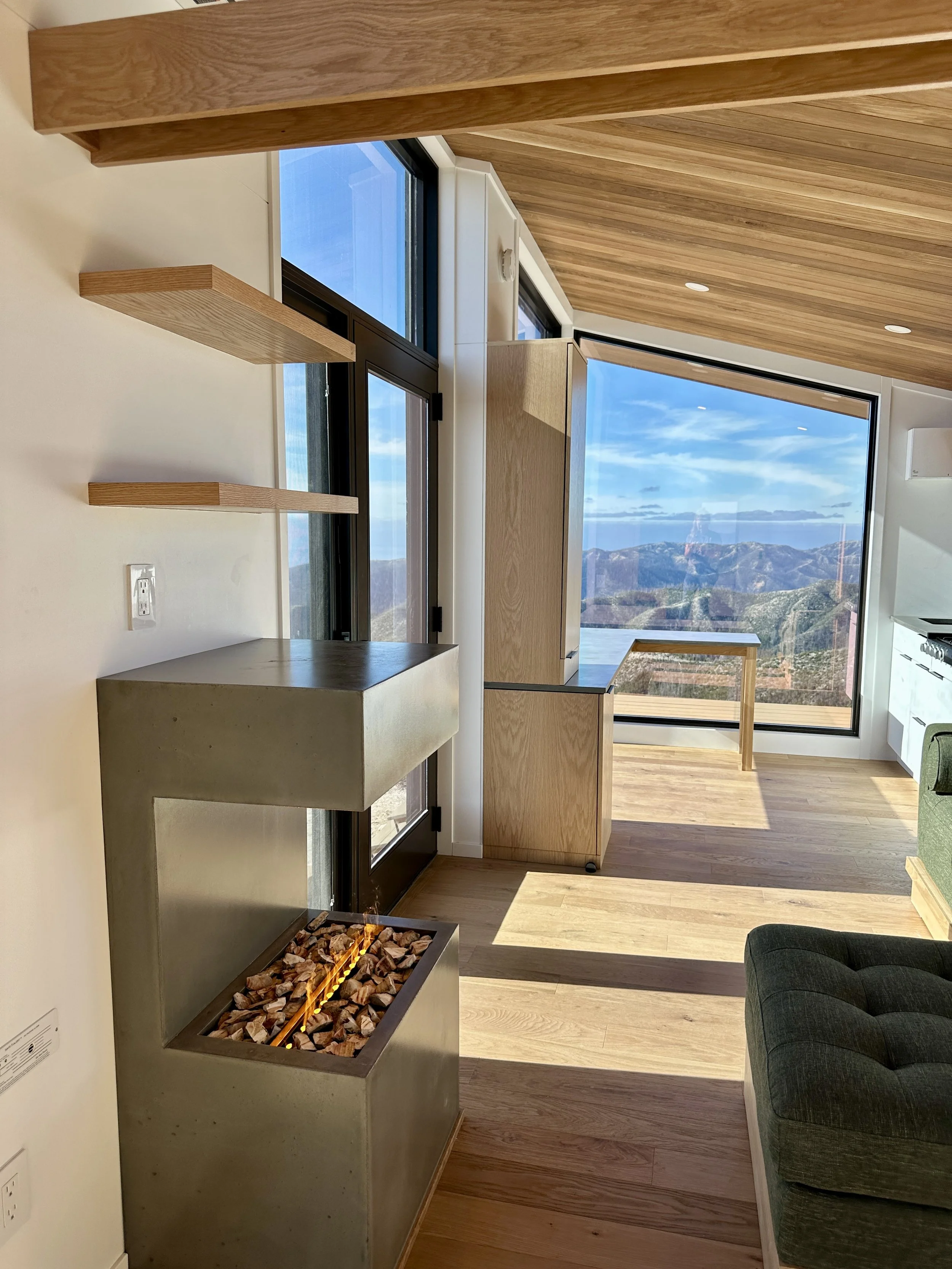 A new exterior color that gave the tiny home the look of corten steel! This color was so complimentary of the California mountain landscape. We were really mindful of the challenges and risks of California forest fire season so we took steps to further ember/fireproof this tiny home.