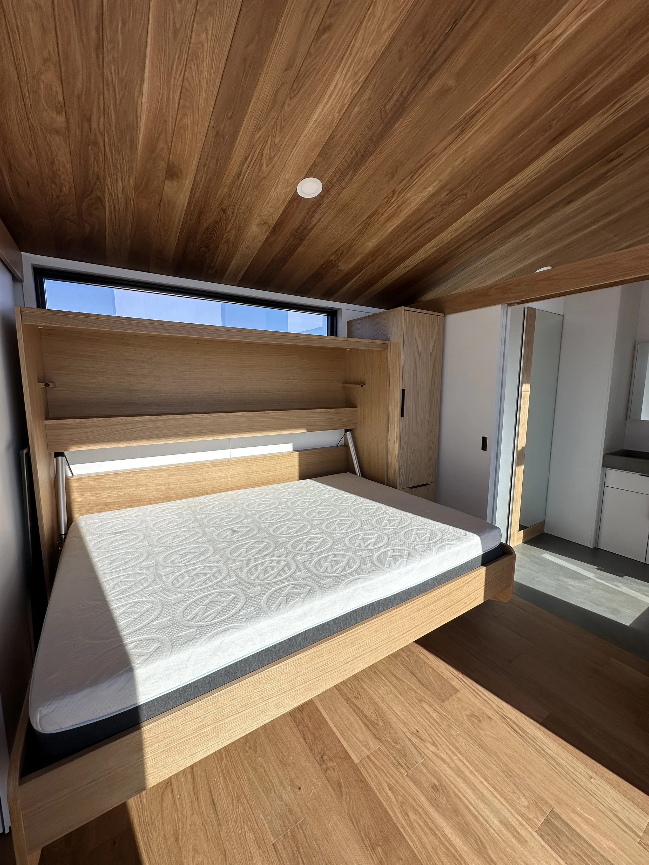 We personalized a custom electric murphy bed. The bed transforms into a desk during the day to maximize space and utility.