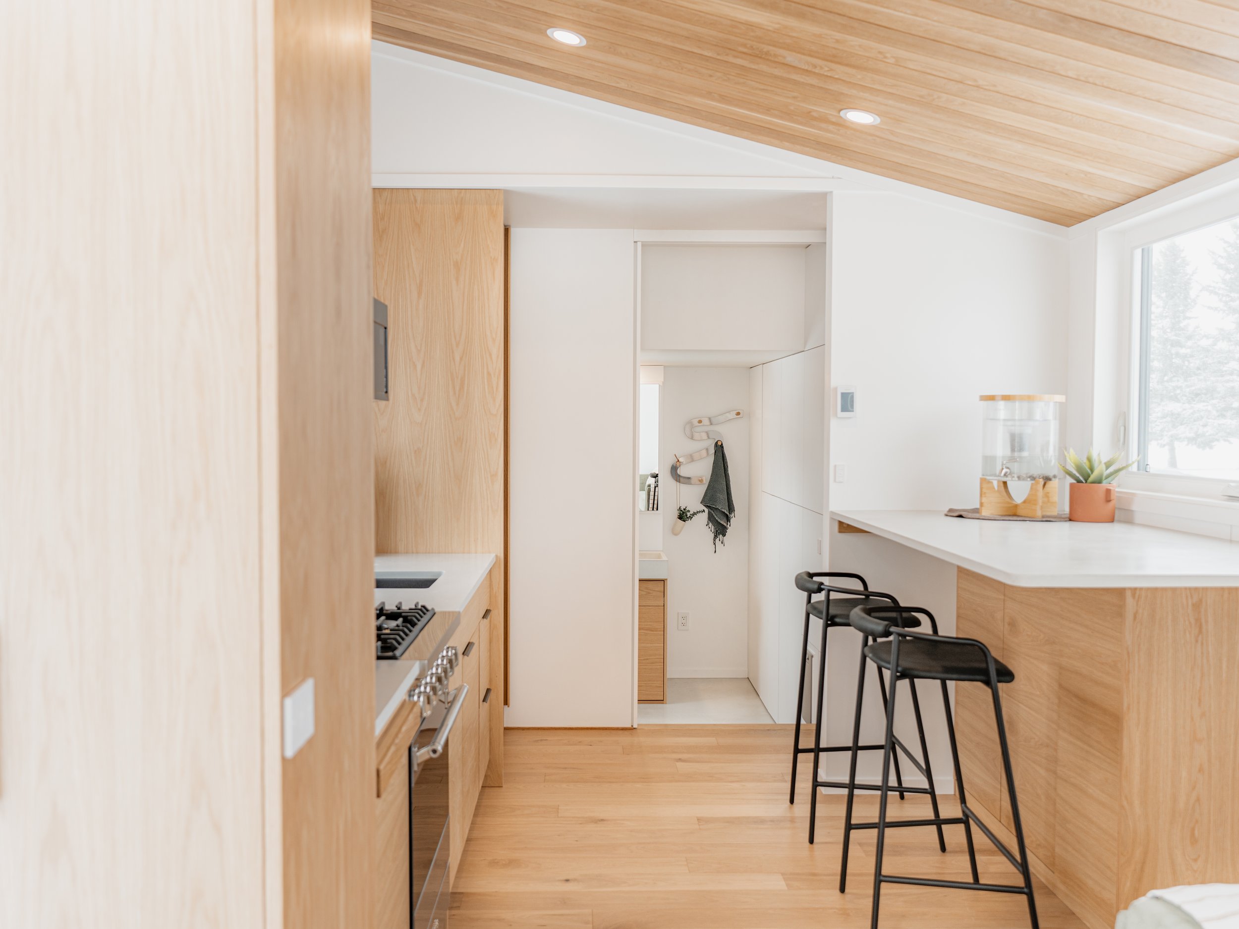 If wheels aren’t the right fit for your location, we can also build this same floor plan (without the loft) off wheels as a modular home, designed to meet your local building code and placed on an engineered permanent foundation. Need the second bedroom? No problem we can add it as a second module that attaches to the back of the home, we are doing this for an upcoming backyard garden suite Do you mean suite? in Calgary, AB.