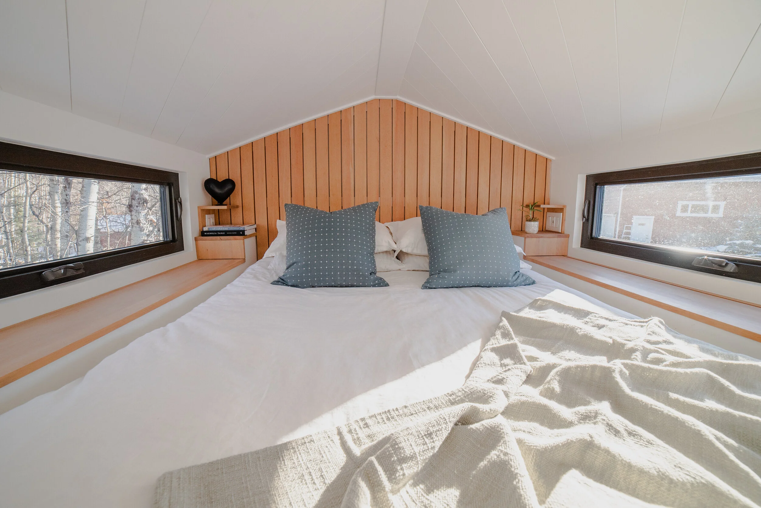 Our first tiny home was a modern Scandinavian design that had 9 windows and a full glass door by Canadian owned company, Duxton Windows & Doors. This company has been family-owned for 20 years and provides outstanding service; we were so happy with them! The amount of light in The Fritz made the space feel, well, more than tiny! The gift of creating a tiny space with ample light is that it pushes back the stereotype of it potentially feeling cramped and allows for both light and the surrounding views to be fully enjoyed.