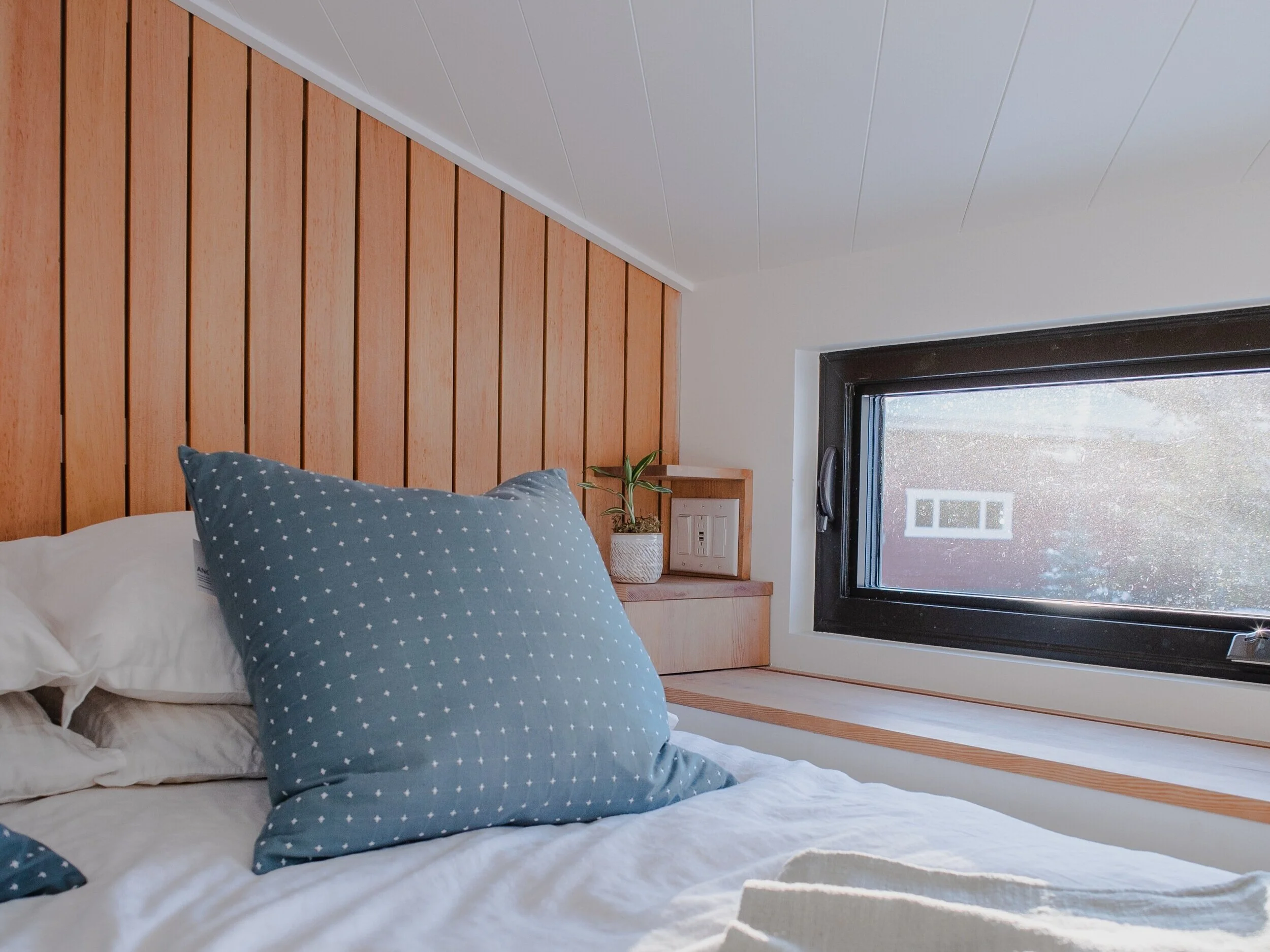 When we started designing this tiny home, we knew we needed to draw on that experience. Windows on both sides of the bed were a MUST. Not only would they bring the view of nature in but also the sounds, the smell, and the feel.